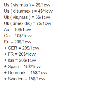 Le prix des cartes de crédit volées varient de 2 $ à 20 $, selon le pays où ils ont été volés :