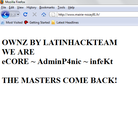Un groupe de pirate nommé « LatinHackTeam » s’est attaqué hier et aujourd’hui à 7 mairies, voici la liste des sites visés par les pirates informatique :