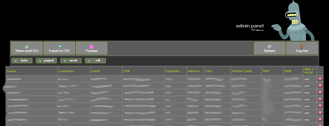 Sur une note plus sérieuse, l’onglet intitulé « Arcot » est intéressant : le système Arcot est la société dont le logiciel fait fonctionner le système d’authentification utilisée par MasterCard’s SecureCode et Verified By Visa. Ce qui est intéressant, c’est que les voleurs pourraient vaincre ces systèmes de sécurité par la collecte de données personnelles sur les titulaires de carte de la victime, ce qu’ils semblent avoir fait ici.
