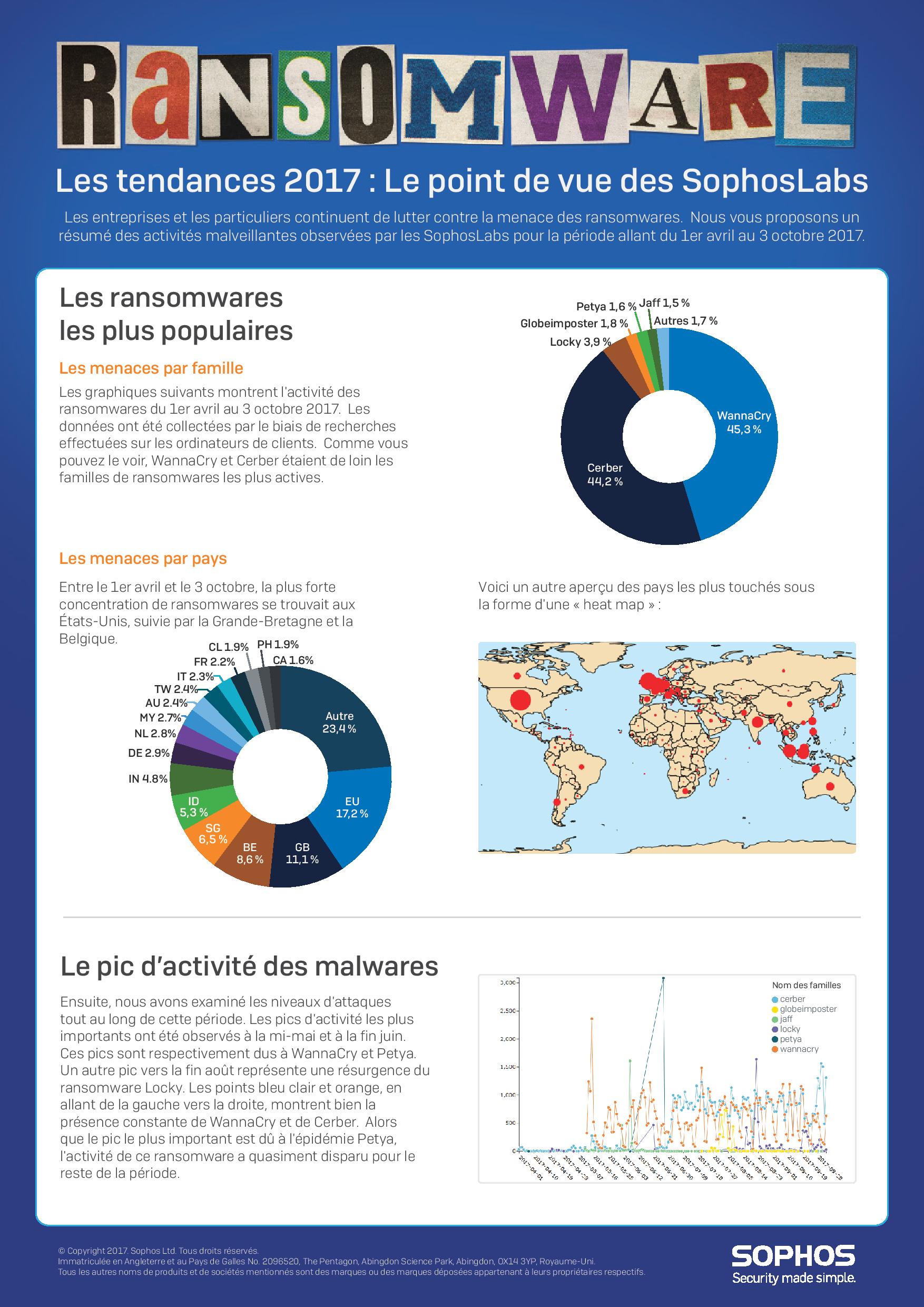 Ci-dessous, l’infographie sur les résultats du rapport 2018 des SophosLabs sur les malwares :